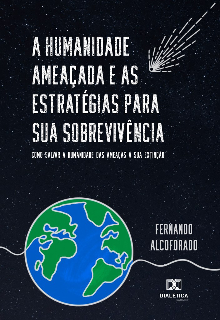 Le titre et le sous-titre (entre parenthèses) de notre 15e livre en portugais sont présentés ci-dessus. Le titre déclare que l’humanité est menacée et que le livre décrit les stratégies nécessaires à sa survie. Le sous-titre renforce le titre en soulignant que ce livre vise à informer comment sauver l’humanité des menaces de son extinction.